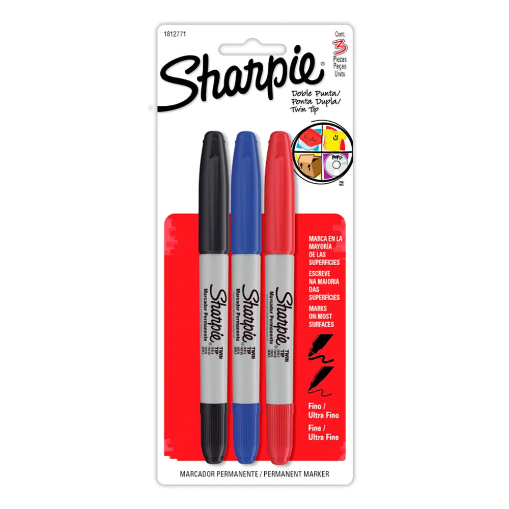 Marcadores permanente Sharpie doble punta blíster x3 colores