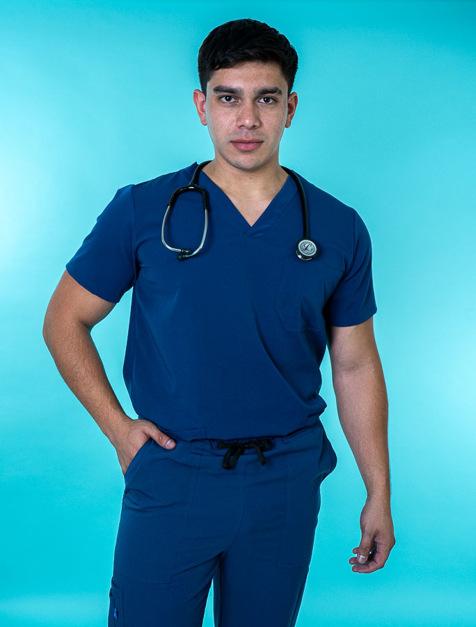 Nuestros uniformes están confeccionados en tela antifluido resistente y transpirable, que protege contra salpicaduras y líquidos sin sacrificar frescura. Su textura suave y liviana permite una excelente movilidad, ideal para el ritmo dinámico del entorno clínico.