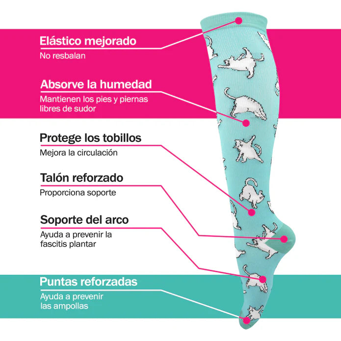 Dale descanso a tus pies con este look imperdible. Nuestras medias de compresión están especialmente diseñadas para ser elásticas, cómodas, ligeras, y que a su vez puedan aportar muchos beneficios a tu salud durante el día a dia.