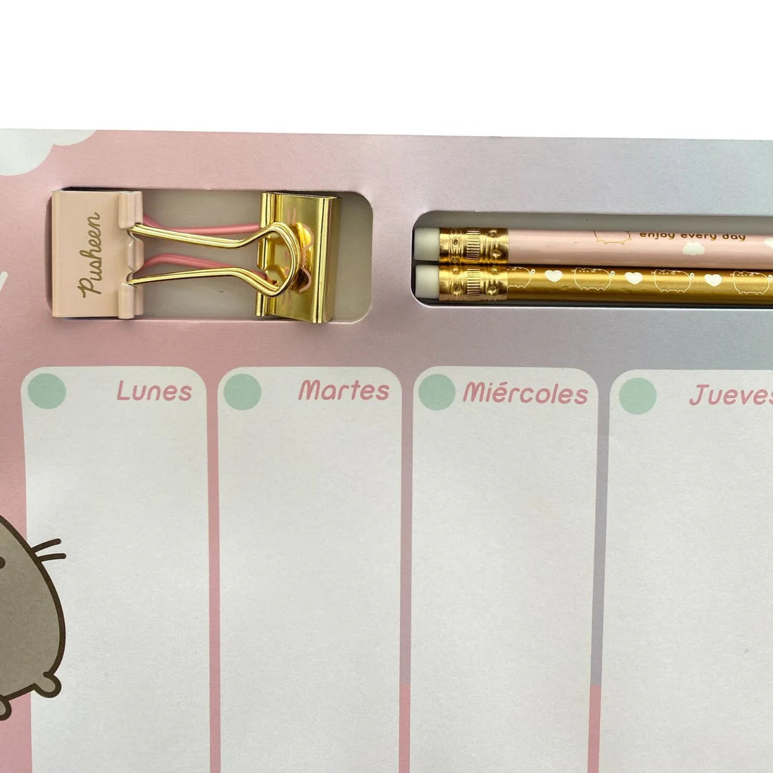 Planifica tu semana con ternura y estilo con el Planner Organizador Semanal Pusheen con Accesorios de Mooving at Work. Es perfecto para mantener tus tareas y compromisos en orden. Cuenta con adorables ilustraciones de Pusheen, el gato más encantador de Internet. Con un diseño atractivo y espacio suficiente para cada día de la semana, podrás anotar fácilmente tus objetivos, citas y metas. Ideal para estudiantes, profesionales y amantes de la organización, el Planner Semanal Mooving Pusheen convierte la planificación en un placer visual y funcional.